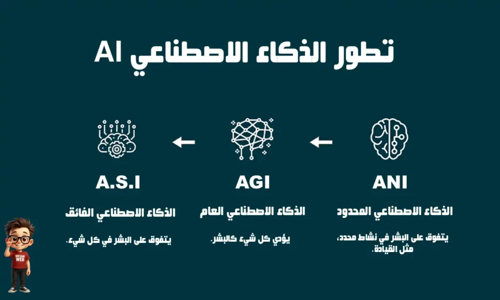 - الذكاء الاصطناعي (AI) هو ما نتعامل معه اليوم: ذكي في مهمة واحدة، لكنه ضعيف في المهام الجديدة.