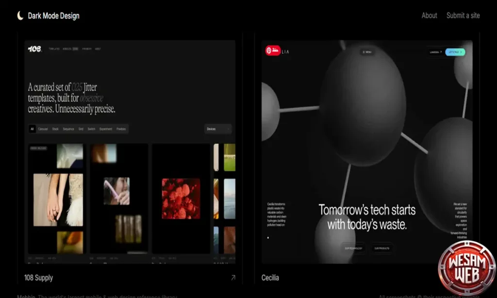 كما يقدم الموقع مجموعة واسعة من التصاميم التي توضح كيفية استخدام الألوان والتباينات بشكل مدروس. وهذا الأمر ضروري جدًا، لأن التصميم الداكن لا يعتمد فقط على اختيار اللون الأسود، بل يحتاج إلى توازن دقيق بين الإضاءة والوضوح.